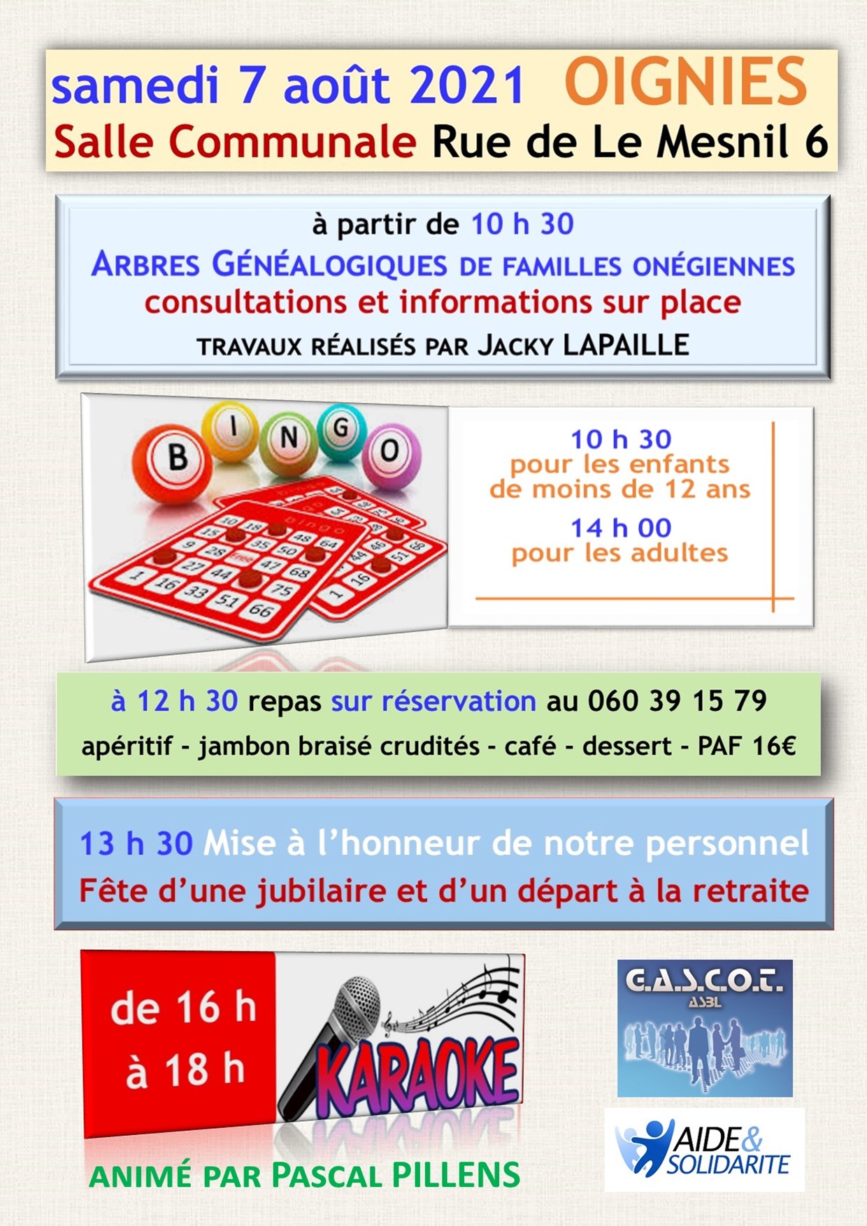 à Oignies et à Le Mesnil" les 8 et 10 août 2015.