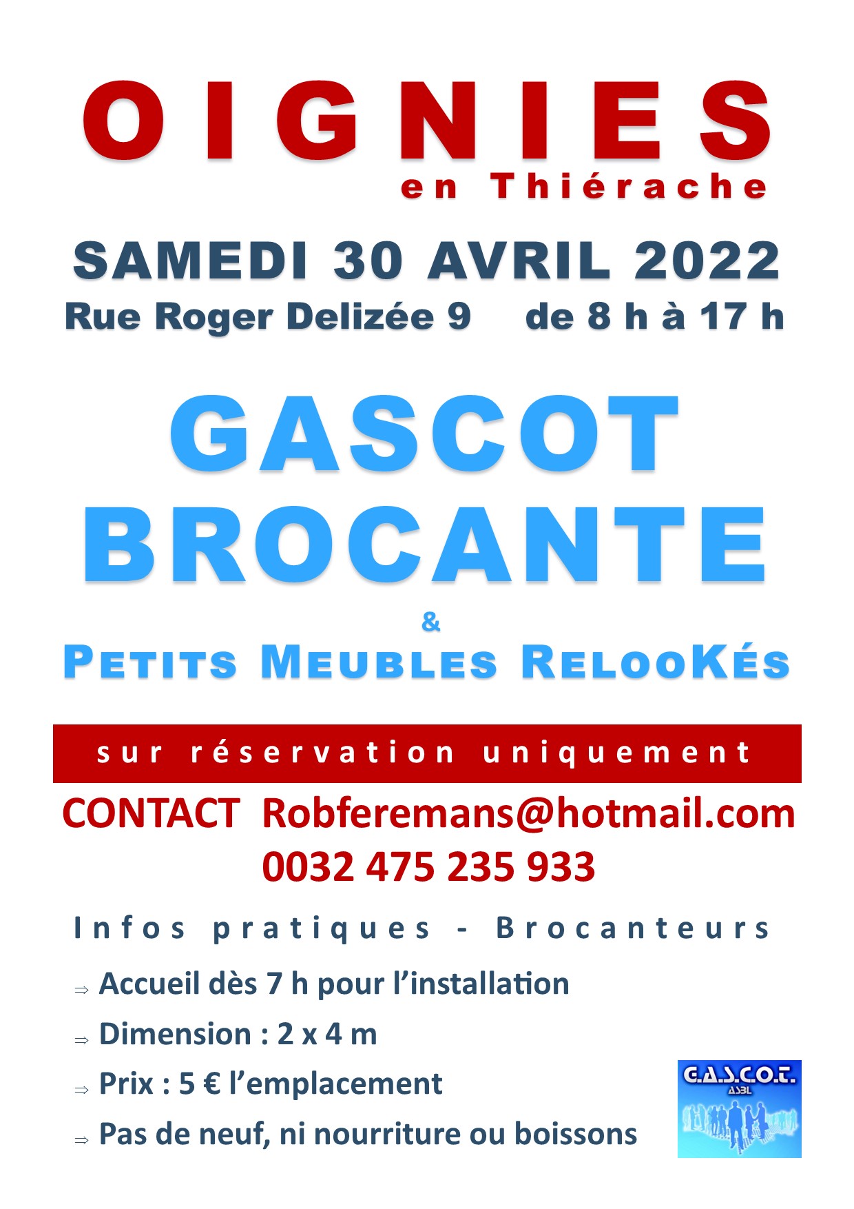 Cette vente est réalisée au profit de nos services et des prochaines activités de notre ASBL.