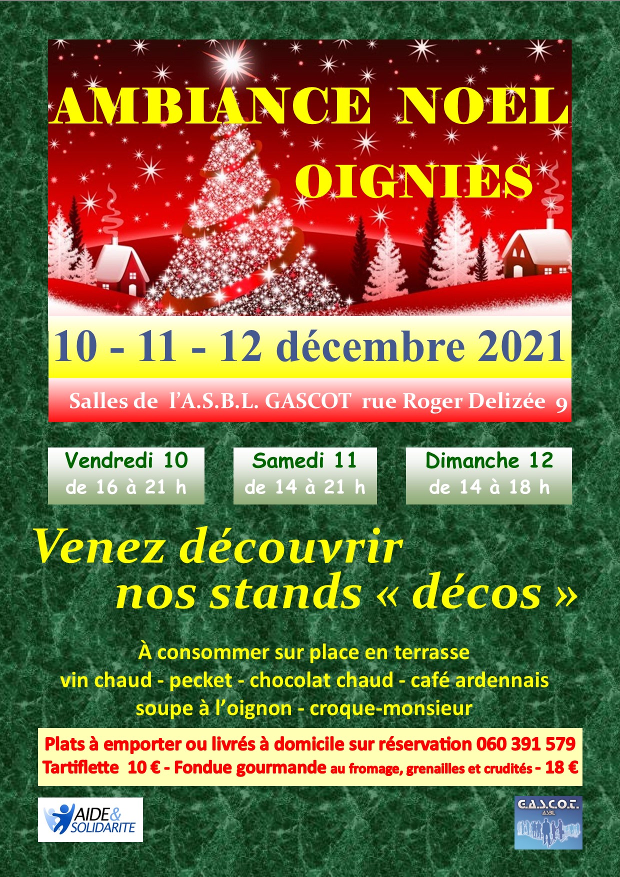 Vous trouverez SOUS L'ONGLET "BOUTIQUE DE NOËL" le catalogue ainsi que le bon de commande à nous communiquer et dès réception de votre paiement, vous pourrez emporter votre colis en nos bureaux, sur rendez-vous uniquement ou de vous serez livrés à votre domicile.